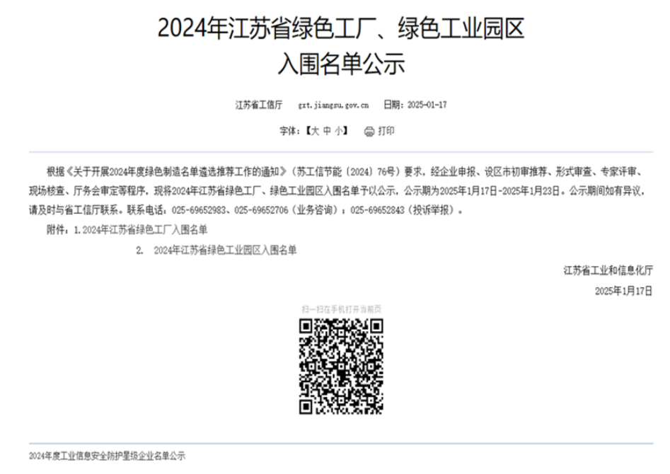 On January 17, 2025, the Jiangsu Provincial Department of Industry and Information Technology announced the list of Jiangsu's green factories for 2024, and Changzhou Huawei Electronics was honored to be included. This recognition is a high affirmation of the company's intelligent and green development, and it also serves as the motivation for us to continue to thrive and advance on the path of innovation and green development in the future.